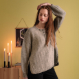 En härlig over size tröja med ett långt sprund i sidan. Tröjan stickas nerifrån och upp med ett vackert strukturmönster på kroppen. Tröjan har en rund hals med knäppning och ärmarna stickas uppifrån och ner i slätstickning med en mudd nertill.