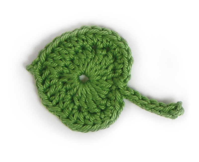 Stjälk: Virka 8 lm, börja i 3:e lm och virka 6 sm tillbaka, sluta med 1 sm i 1:a fm på varv 2.