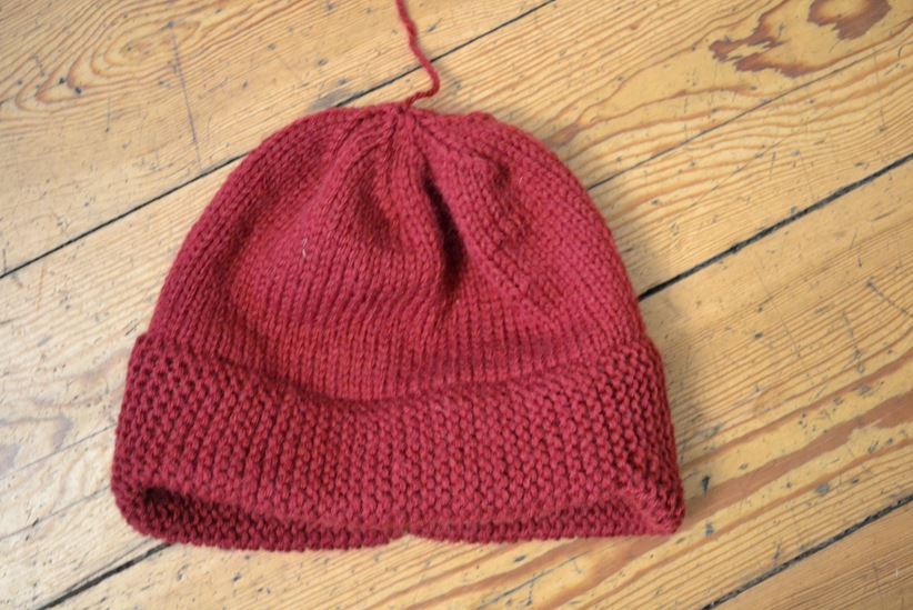 En liten extra poäng, fast helt oviktig egentligen, är att mössan stickas med enbart räta maskor.
