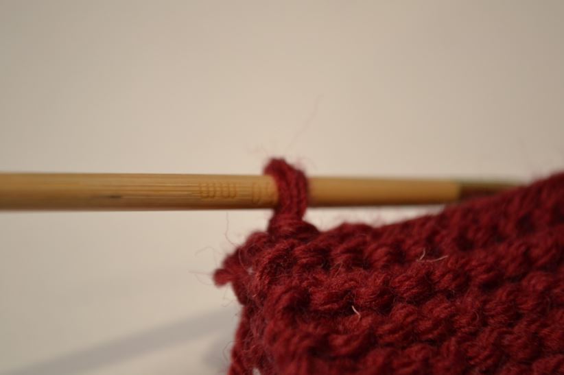 Till slut har du en enda maska kvar på virknålen och inga på stickorna.