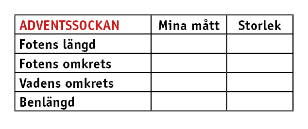 - Mät foten och bestäm storlek. Skriv ner måtten – använd gärna tabellen nedan.