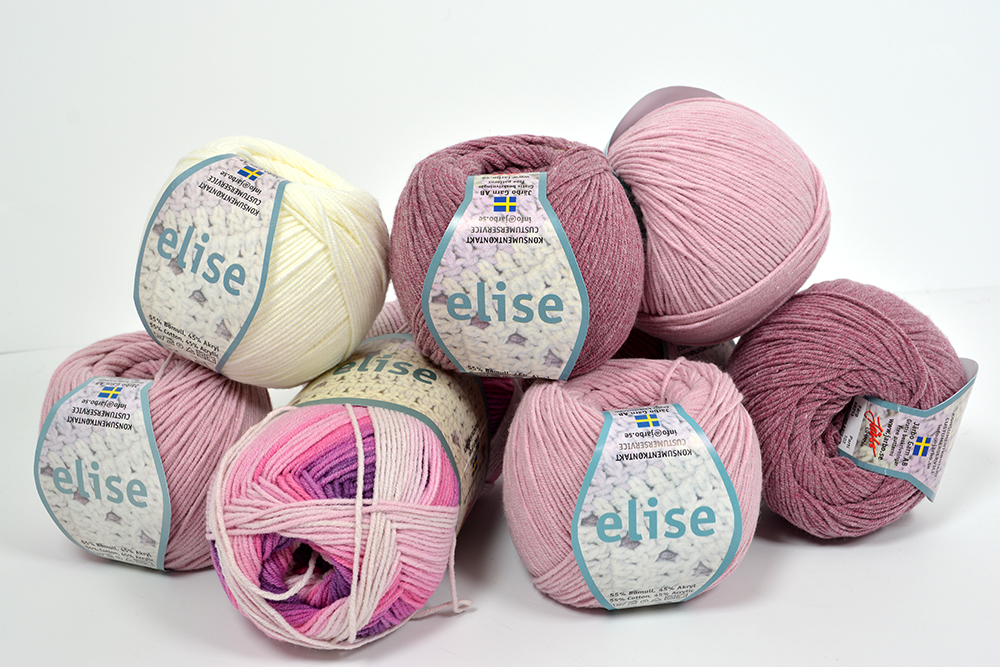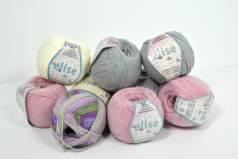 Elise är ett härligt sommargarn med en skön blandning av bomull och akryl. Det är lätt att virka med och ger ett fint fall i dina plagg.