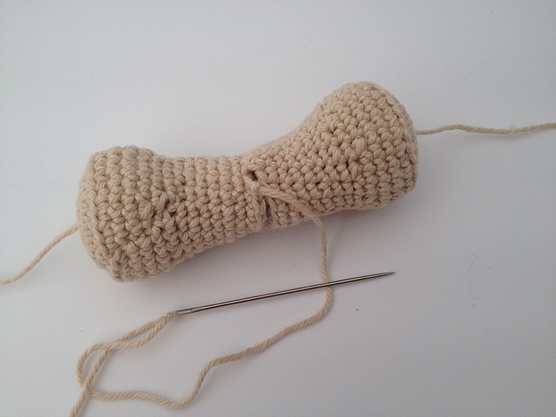 Sy ihop halvorna och fyll på med vadd, ganska hårt men inte så rullen blir bullig. Fäst tråden.