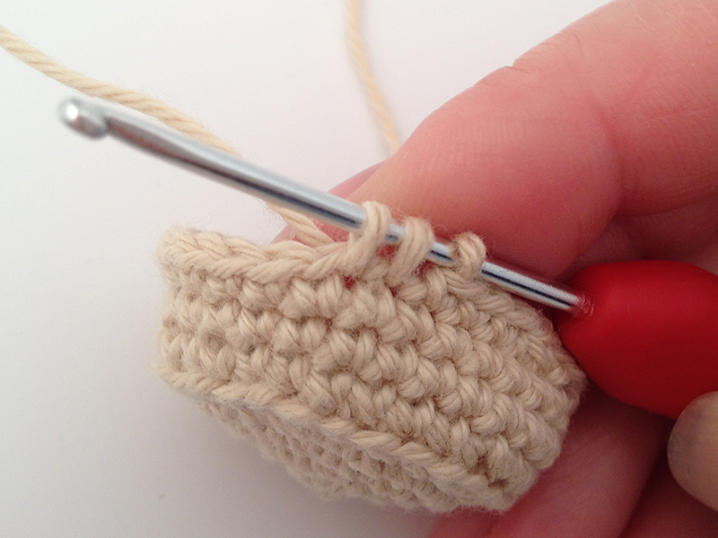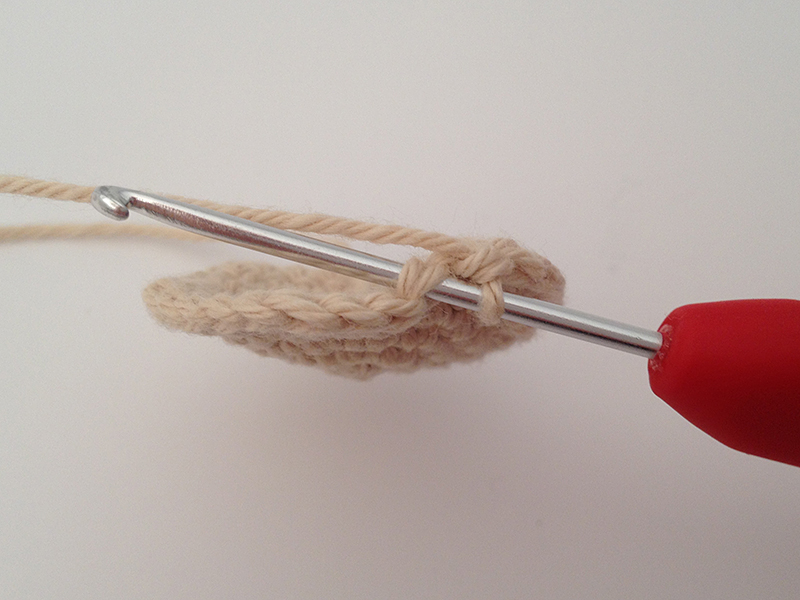 Varv 6-7: Virka 1 lm, 1 fm i var fm, 1 sm.