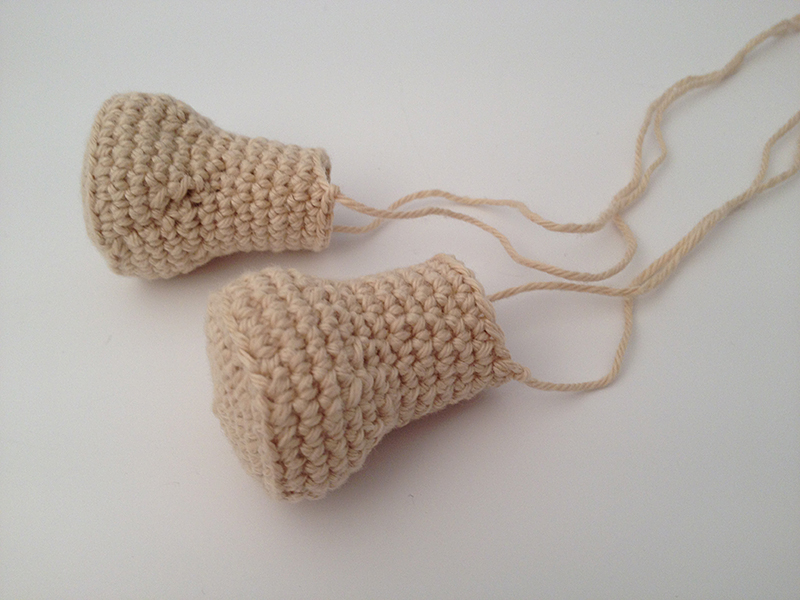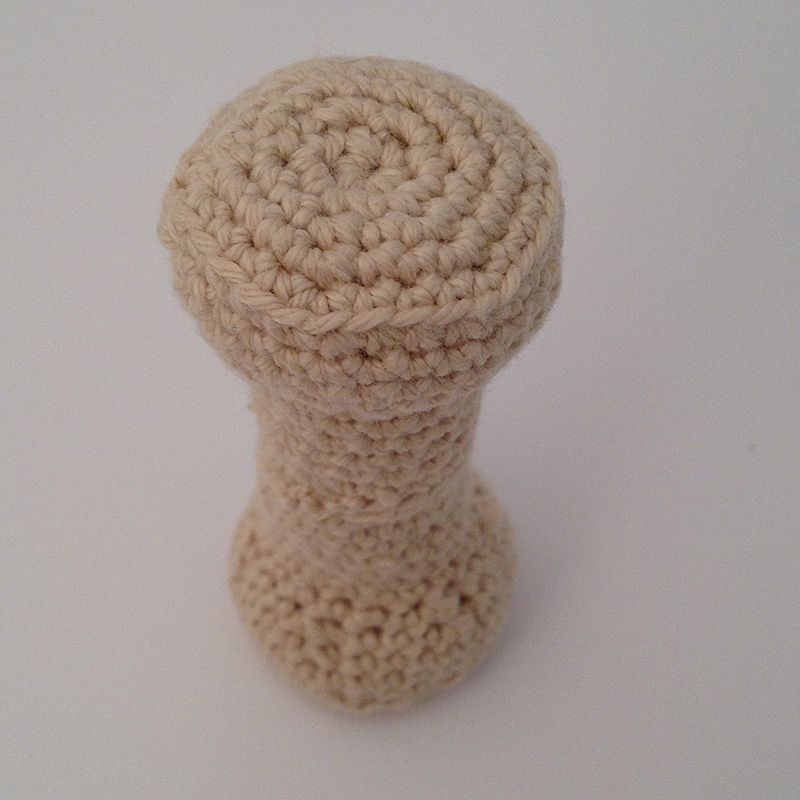 Trådrullen virkas i två delar som sys ihop på mitten.