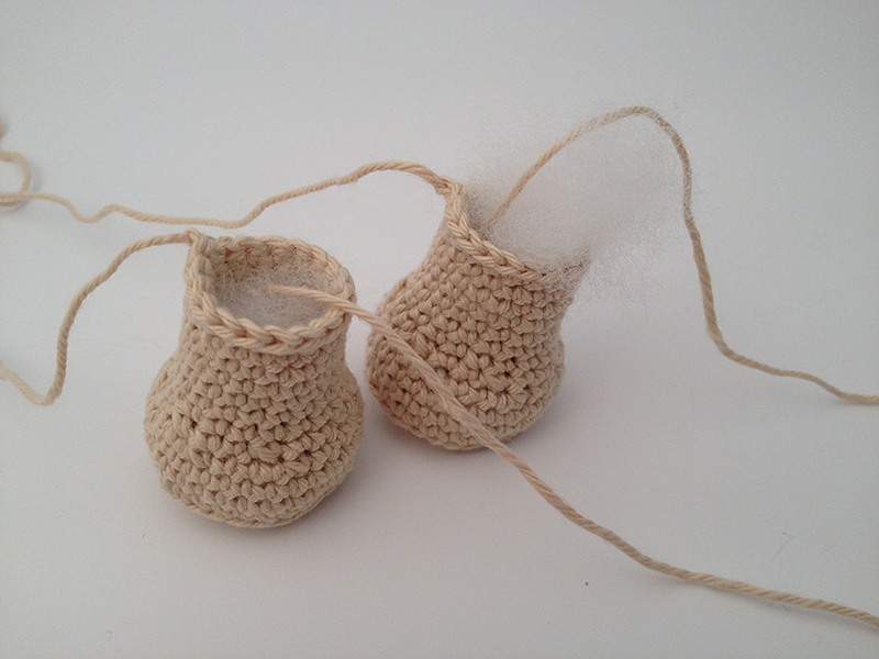 Låt en ganska lång tråd hänga i början. den ska användas senare i monteringen.