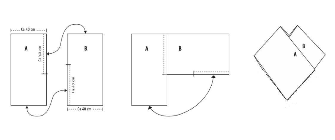 Plagget stickas i 2 delar som sedan sys ihop enl skiss. Plagget stickas i dubbelt garn.