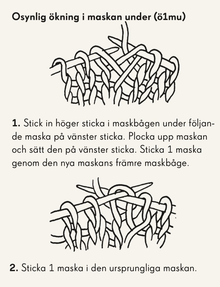 Förklaringar: Ö1mu = Öka 1 maska under. Se bildbeskrivning nedan: