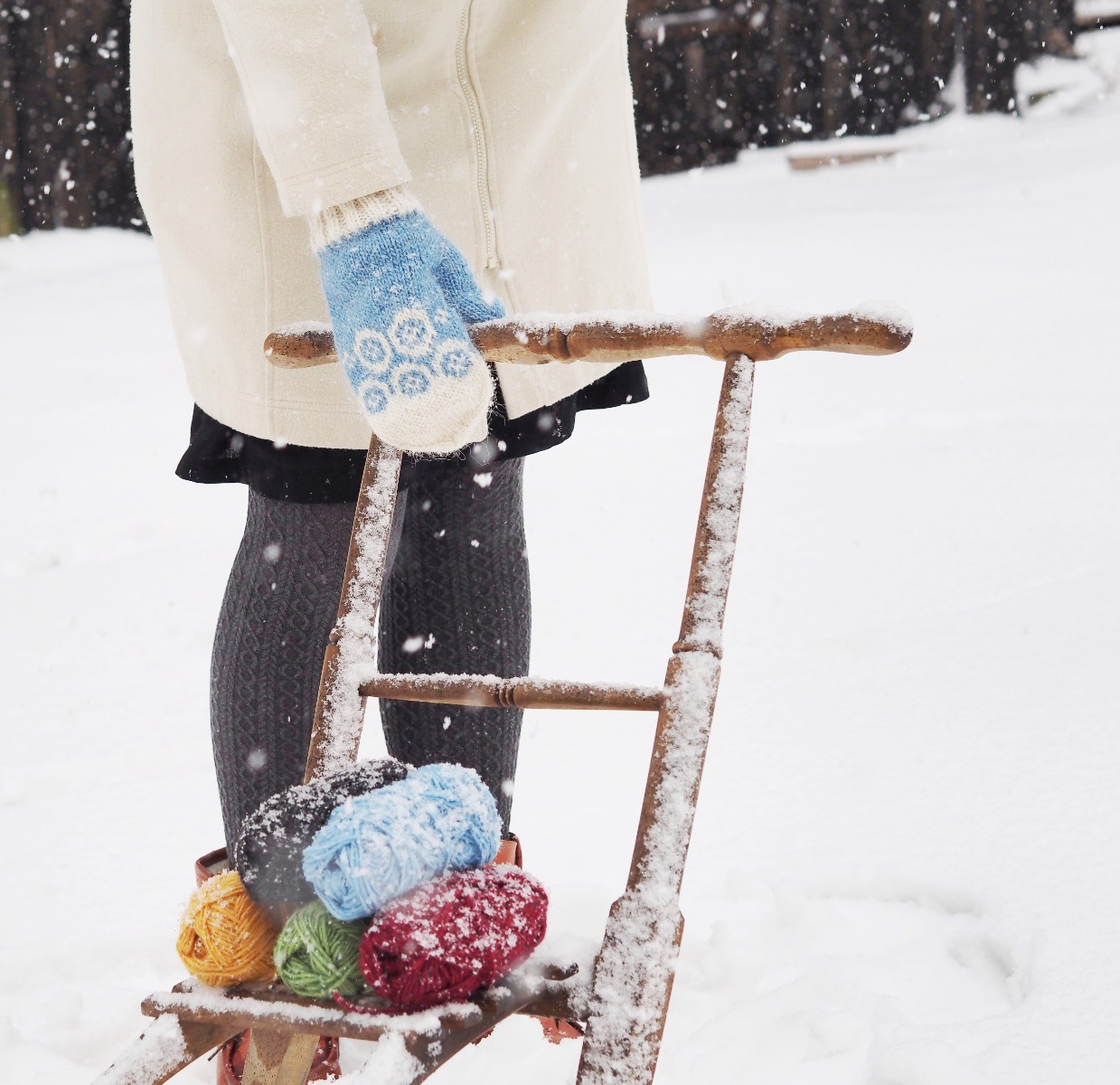 Min vante stickas i robust isländsk ull som står emot både kyla och väta. Jag tänker mig mönstret som min nordiska tolkning av de fem OS-ringarna. Hoppas du ska gilla det!