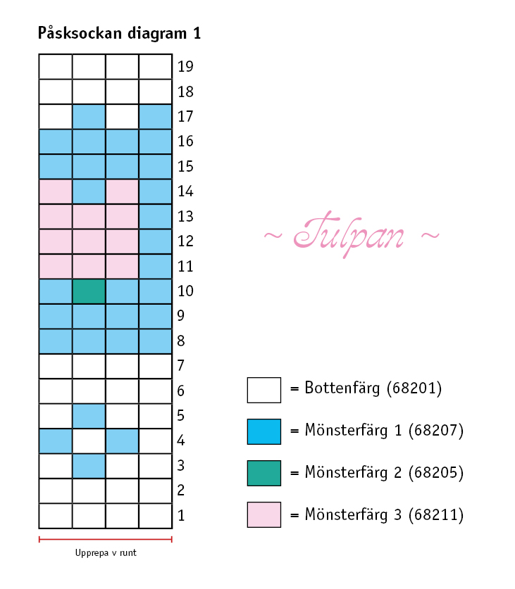 Efter sista ökningsvarvet är gjort fortsätter du sticka enligt diagram 1, varv 1-19.