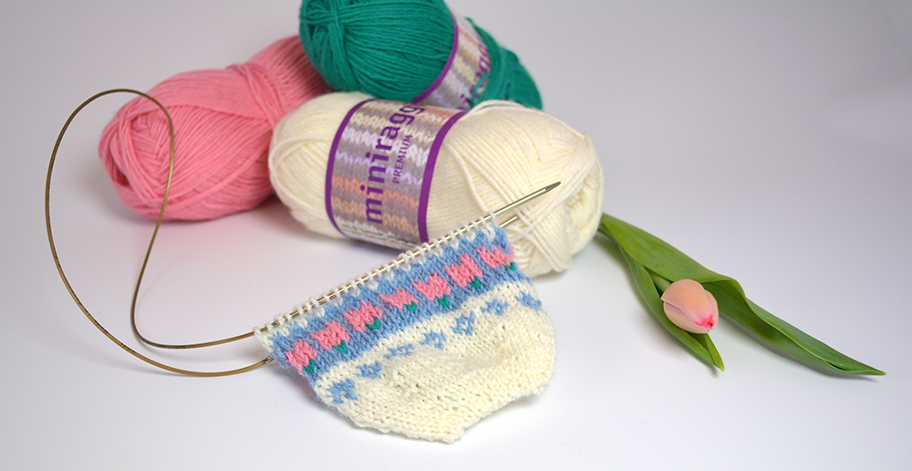Eftersom vi ska sticka sockan från tån och uppåt, gör vi en speciell uppläggning som ger en helt osynlig början! Uppläggningen kallas Judy’s magic cast-on och du kan se i vår instruktionsfilm på tå-upp-uppläggning hur den går till. Där ser du även hur vi stickar med magic loop tekniken, alltså att sticka socka på en lång rundsticka istället för strumpstickor. Uppläggningen går även att göra på två strumpstickor, men det blir lite pilligare att komma åt maskorna.