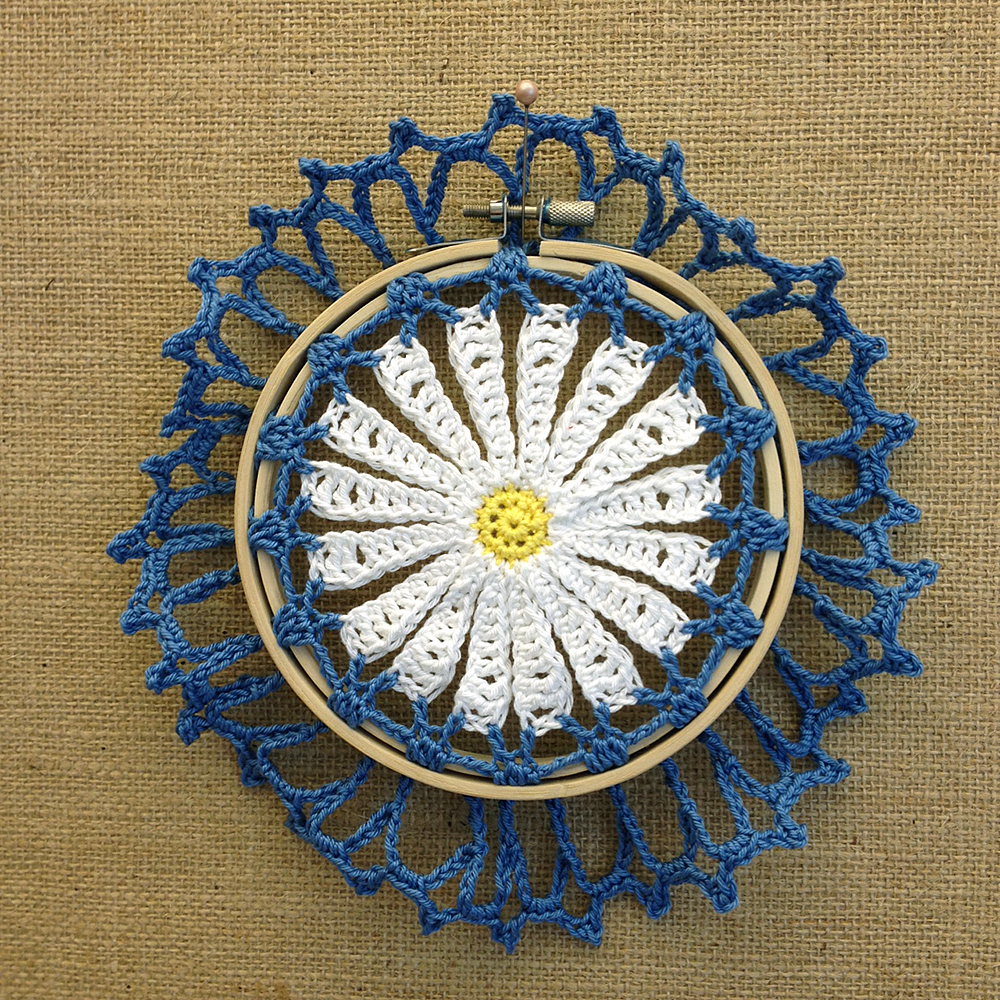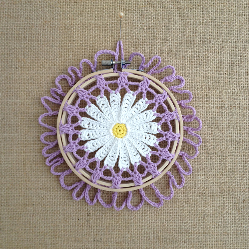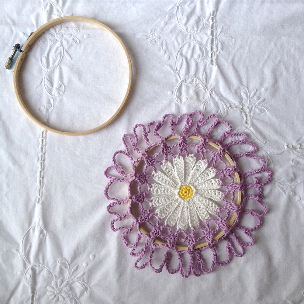 Än hinner du virka en sista-minuten-gåva till midsommar. Denna prästkrageduk är snabbvirkad och passar både som duk och tavla!