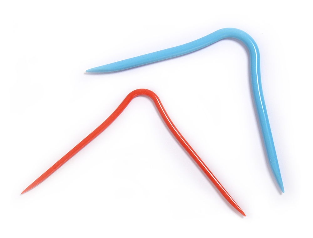 Stickornas innovativa form gör att du bara behöver använda dig av tre stickor – två som håller maskorna på plats och en tredje som du stickar med! Detta gör det både enklare, snabbare och bekvämare att sticka allt ifrån sockor till mössor och ärmar.