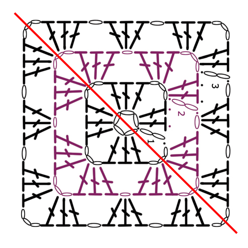 Ibland passar det inte med enbart hela rutor när man ska montera till något speciellt. Då kan det vara bra med halva rutor. Här visar vi hur du virkar en halv trekantig mormorsruta.