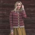 Saga är en damkofta med flerfärgsmönster i lättstickade bårder med korta flotteringar. Alla kanter avslutas med en virkad kant i kontrastfärg. Koftan rundstickas uppifrån och ned med ett ok. Oket stickas med ökningar för att sedan delas upp i bål och ärmar som stickas var för sig. Till sist klipps koftan upp mitt fram och kanterna stickas.