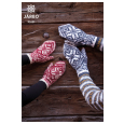Inspirationen till vantarna kom ursprungligen från tummönstret på en selbuvante jag stickade, och den kakliknande formen blev avgörande för designprocessen. Precis som sockorna och mössan Sirapssnitt påminner formen i mönstret om en norsk småkaka! På dessa fina vantar är åttabladsmönstret huvudmotiv! Det här mönstret är typiskt för sättet jag arbetar på, där en och samma mönsteridé kan varieras på många olika sätt. Vantarna stickas från mudden mot toppen i två färger av Järbo 2 tr ull. Du kan själv välja dina favoritfärger, eller förslagen här i mönstret. För att mönstret ska framträda ordentligt är det bra att välja två färger som står i kontrast till varandra. Vantarna har skön passform, och värmer även kalla vinterdagar. Mönstret ser avancerat ut, men är väldigt tacksamt att sticka då det är få maskor mellan färgbytena.