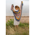 Sjalen stickas i två likadana halvor i randning enl ovan. Diagrammen visar endast varv från rätsidan, m och omslag på avigsidan stickas avigt (utom de tjocka linjerna). Diagrammet upprepas efter markören mitt på sjalen. Vid varje tjock linje i diagrammet byts till nästa färg. Varven från avigs innan färgbyte stickas räta så att varje färgrand slutar med en rätt v fr avigs.