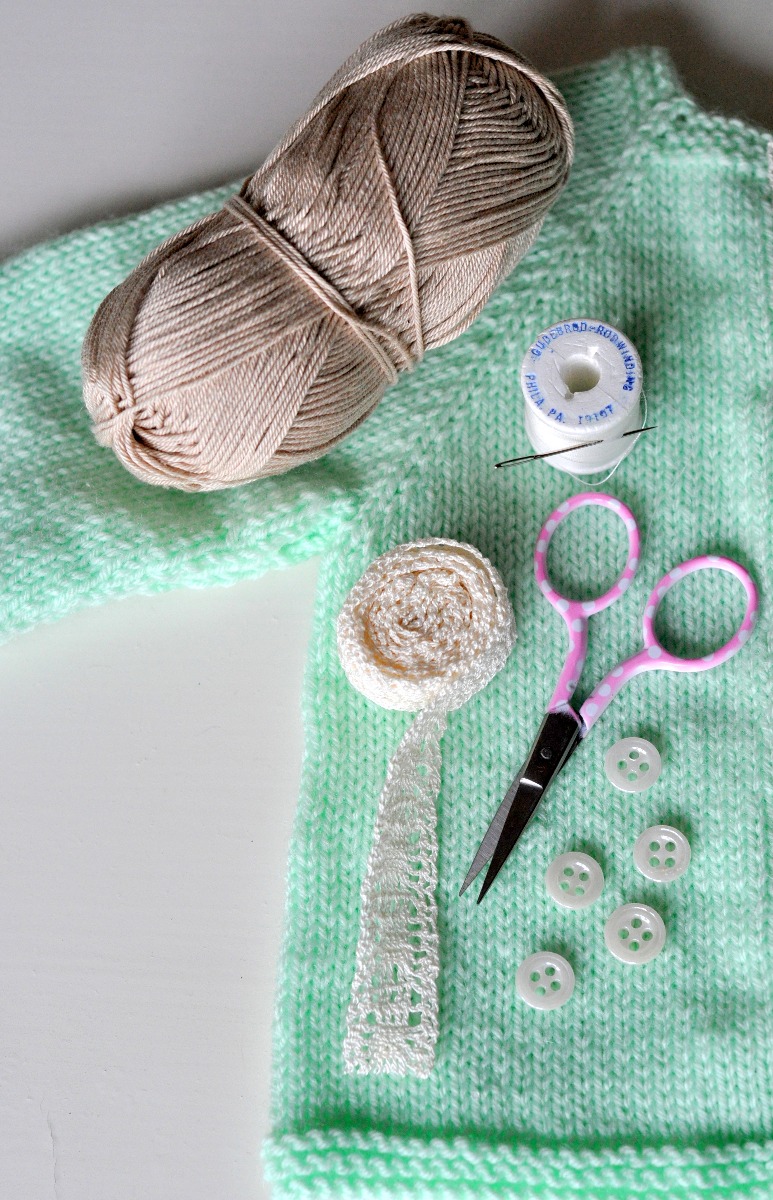 Jag kommer att visa er hur jag har gjort med den söta babykoftan som Anna beskrev här på bloggen igår. Vi bestämde oss nämligen för att samarbeta om den: Anna konstruerade, stickade och skrev mönster – och jag gjorde slutfixet med knappar och dekor… Ovanför ser ni slutresultatet av våra ansträngningar!