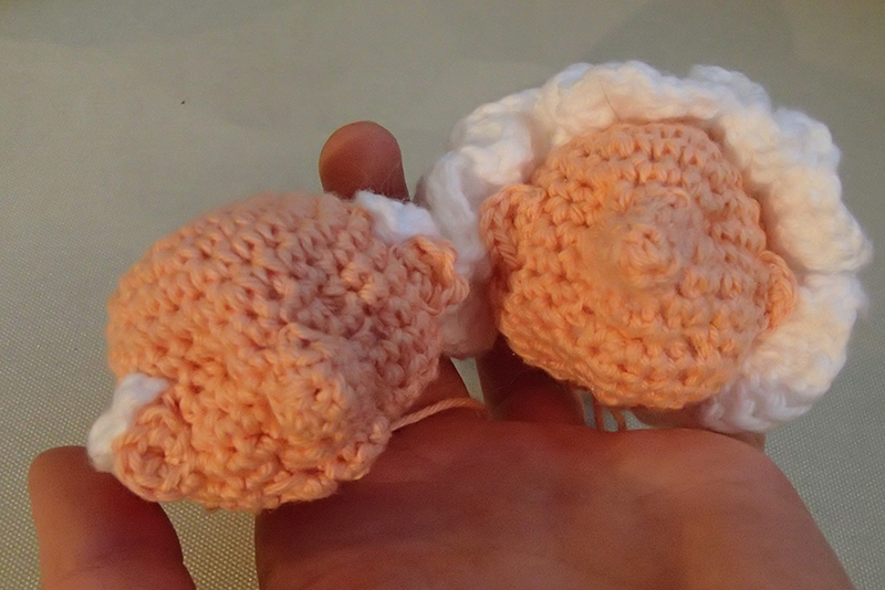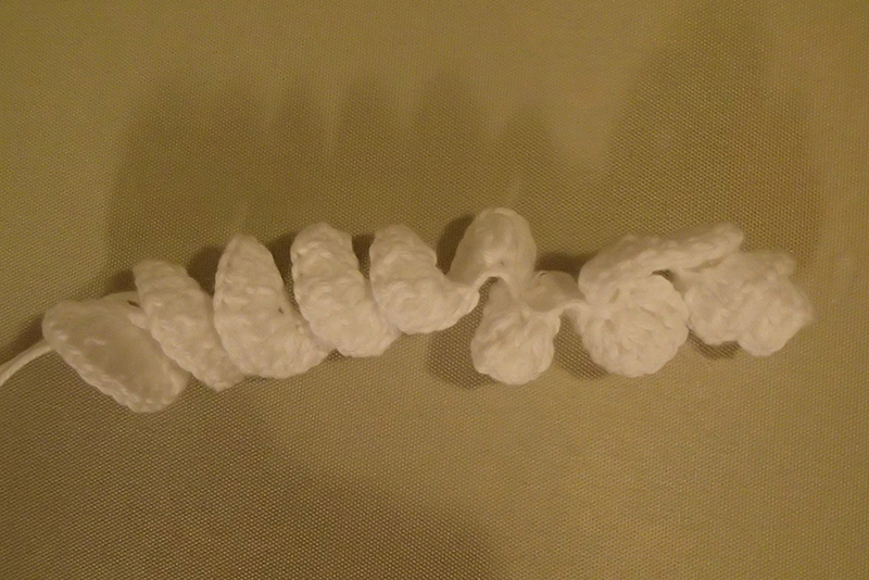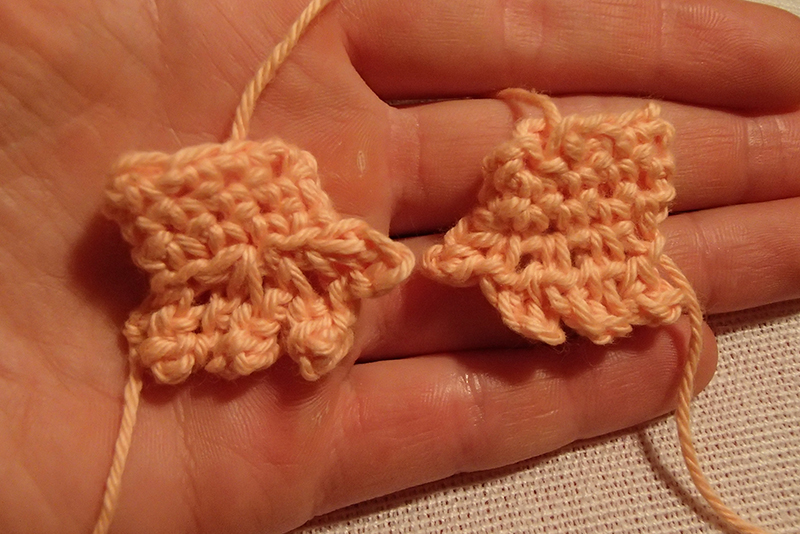 Varv 13: Virka (2 fm, 2 fm tills) 6 ggr = 18 fm.