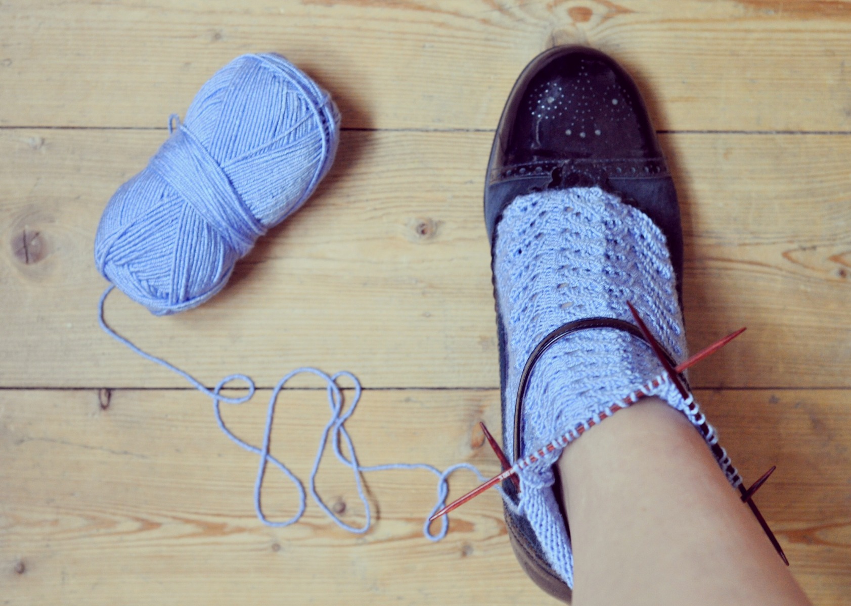 Spetsstrumpor är väl inte det första man kommer att tänka på i den här iskylan MEN, det kommer en vår – jag lovar! Så varför inte ägna några mörka vinterkvällar åt att sticka dig ett par lavendelblå vårstrumpor? Eller bara försöka dig på spetsmönstret i form av en en liten rundstickad provlapp och på så vis ta din stickning till nästa nivå?