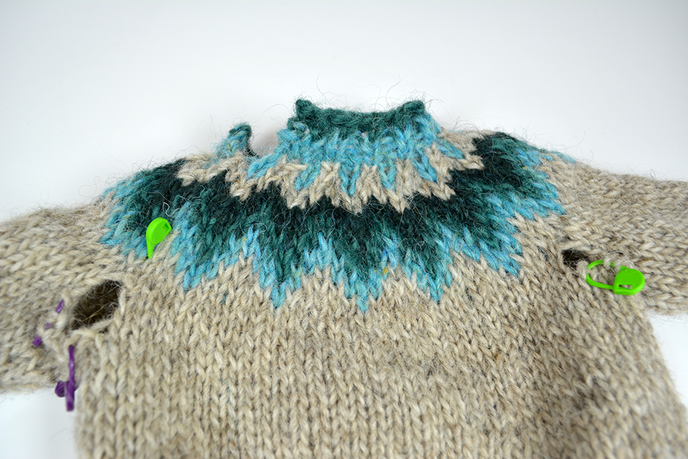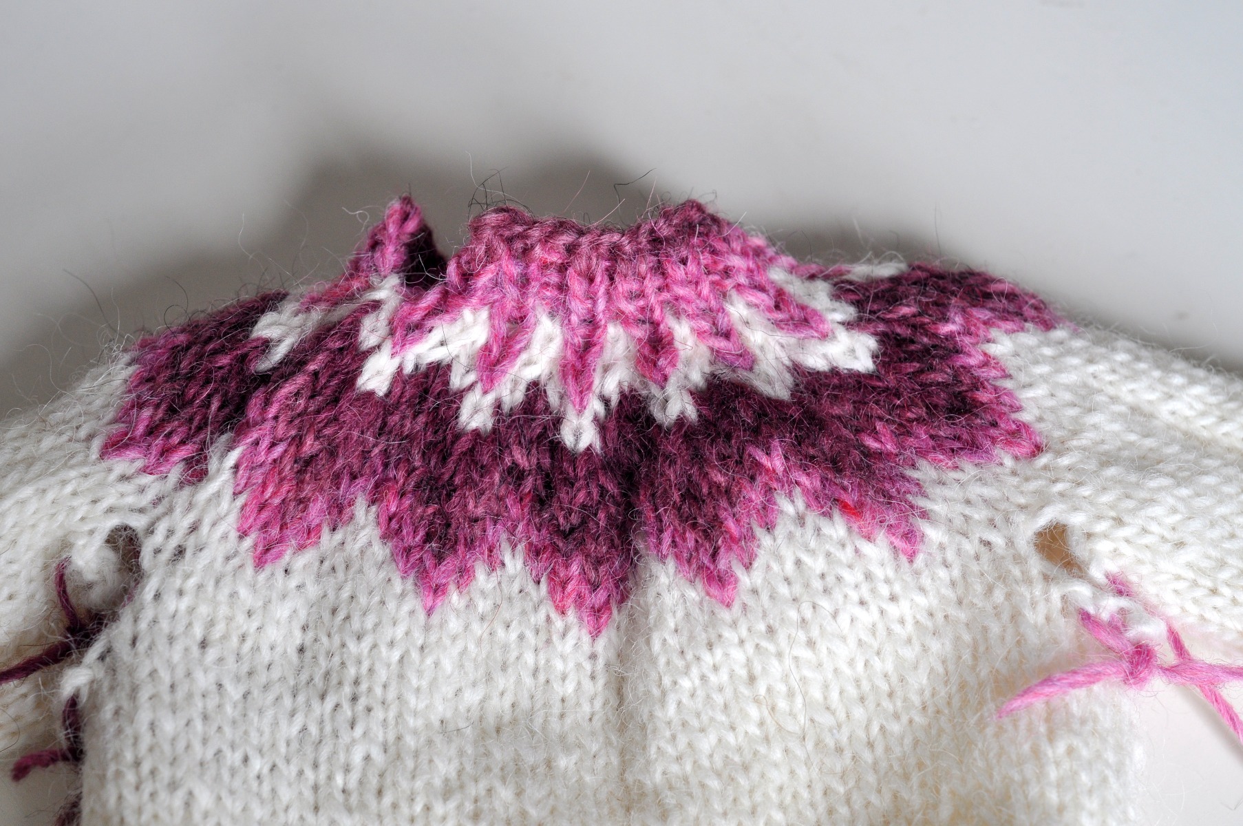 Jag tyckte det var roligt att sticka oket med flera färger och minskningar. Så himla smidigt att sticka ihop ärmar och bål så här, ingen tråkigt montering och klumpiga sömmar! Jag gillar hur ullens strävhet kärvar ihop sig på avigsidan.
