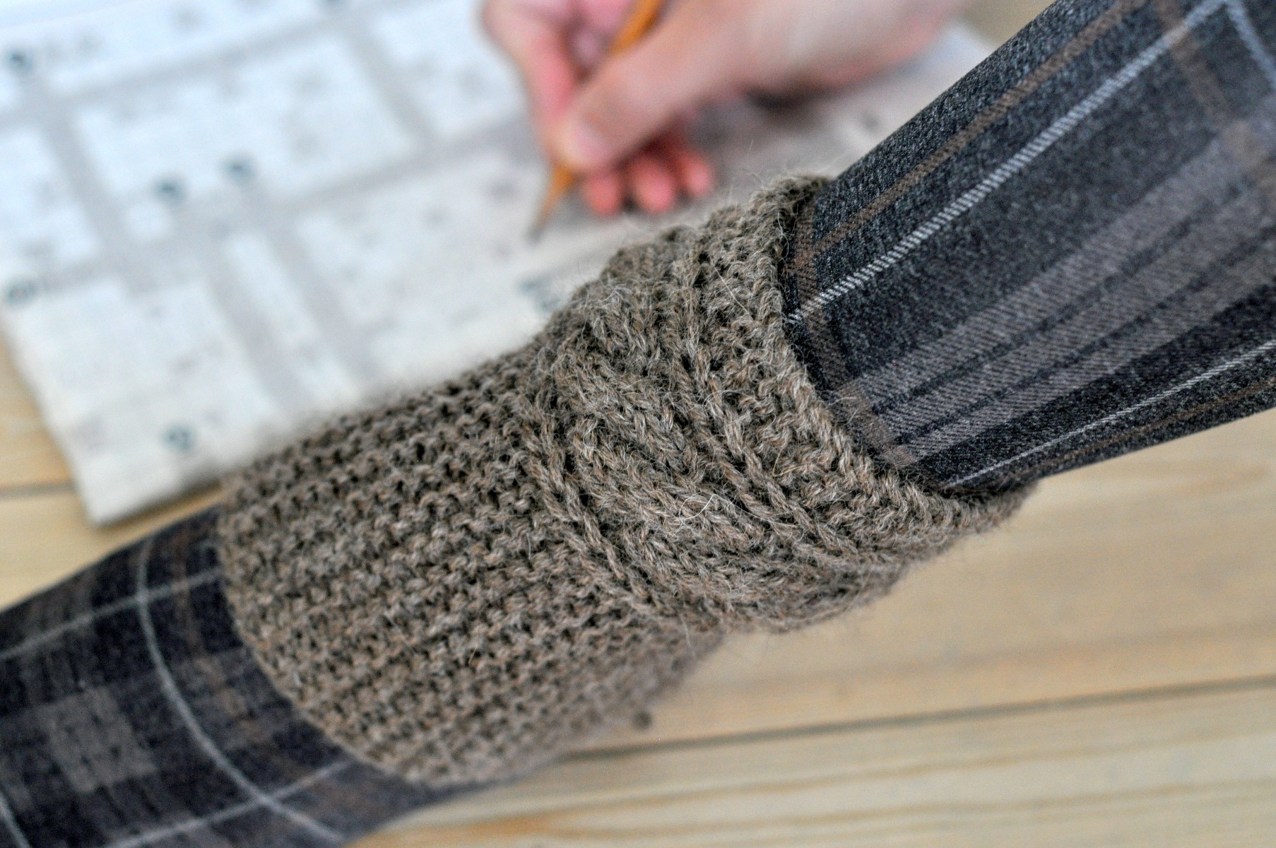 Upprepa varv 8-13 till arbetet mäter ca 25 cm. (Mät runt din vrist så att passformen känns bra. Tänk på att den snedställda rätstickningen blir ganska stretchig, så att du inte gör din benvärmare för vid.)
