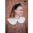 En stickad krage att bära utanpå en tröja eller jacka/kappa. Kragen stickas med dubbelt garn och avslutas med en i-cordavmaskning.