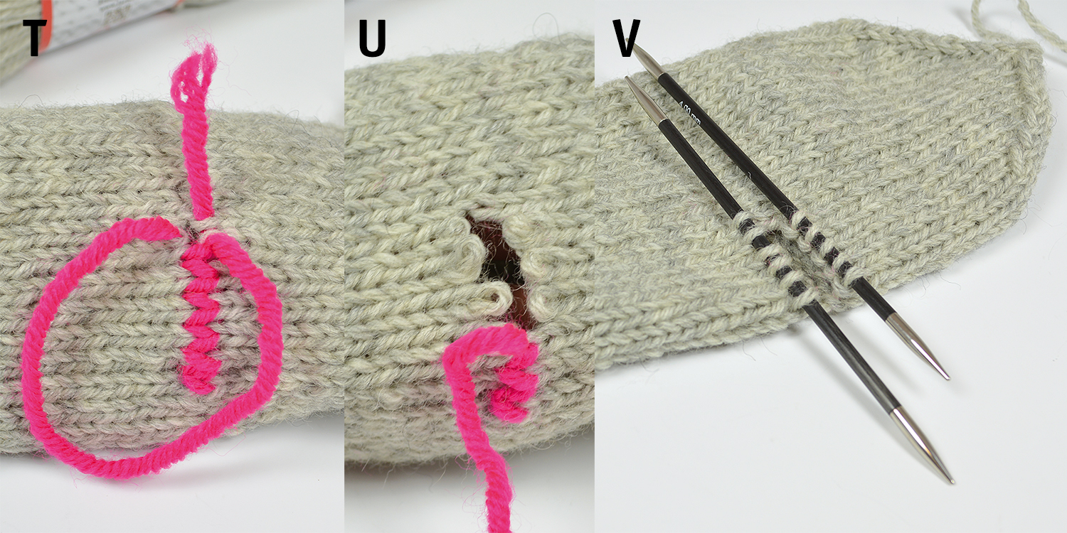 T-U. Lossa markeringstråden och dra den försiktigt ur maskorna…