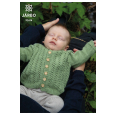 Koftan Stig är en nätt och sirlig liten kofta. Strukturen är enkel att lära sig och sätter en retro-inspirerad prägel på detta babyplagg. Koftan stickas nedifrån och upp, först bålen och sen ärmarna. Sist sätts alla delar ihop på samma sticka och stickas fram- och tillbaka med raglanminskningar vid varje ärm. Matcha gärna med byxor ur samma set.