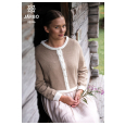 Vacker kofta med fokus på figuren, stickad uppifrån och ned, med sadelaxlar och formad midja. De dubbla kanterna är stickade i en annan kvalitet och färg än koftan med ett enkelt strukturmönster som dekoration.