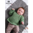 En enkel och lättstickad tröja för barn från tre månader till fyra år. Randstrukturen ger den lite karaktär. Knappar på axeln gör den lätt att ta av och på. Du börjar i nederkanten och stickar runt tills det är dags att dela för fram- och bakstycke. Ena axeln sys ihop, och till ärmarna plockas maskor upp i ärmöppningarna. Till sist stickas halskant och andra axelns knappkanter.