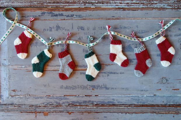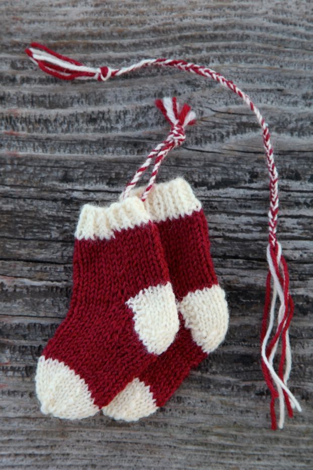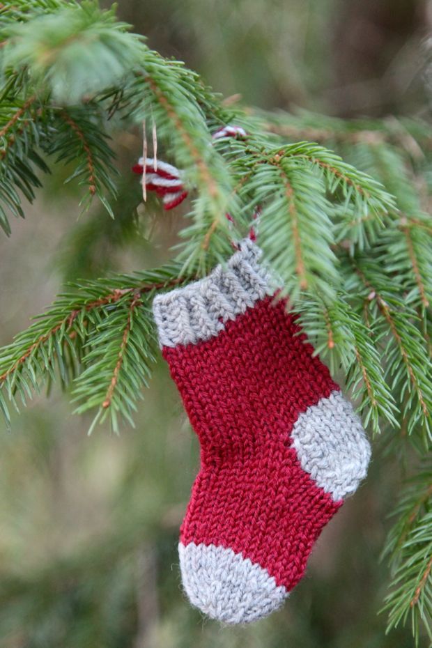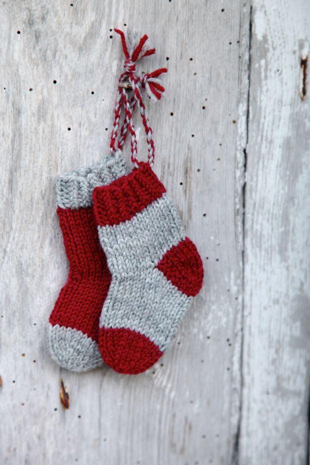 Vad är väl finare att dekorera julgranen med än egentillverkat pynt? Varför inte sticka små minisockor?