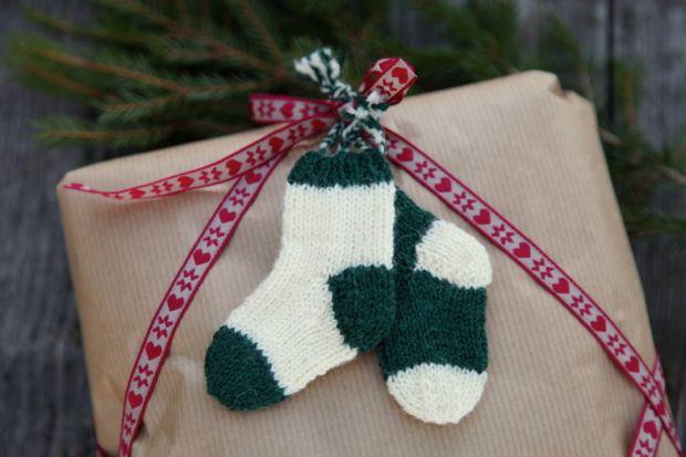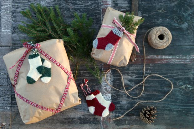 De små minisockorna passar också utmärkt till paketdekorationer.