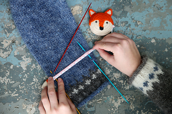Om du vill kan du börja sticka på en ärm för att mäta din masktäthet där. En ärm är ganska lätt att repa upp om det skulle behövas och om det bara krävs en mindre justering kanske den inte ens behöver repas upp då skillnaden inte blir lika stor på en ärm som över själva tröjan. Masktätheten kan variera om du stickar runt (som på ärmarna och tröjan) jämfört med om du stickar fram och tillbaka som du gör på en provlapp. Det gör att det finns ytterligare en anledning att mäta masktätheten på en ärm.