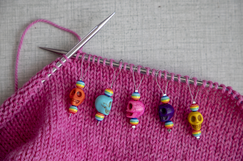 En stickmarkör kan se ut på många vis. Ibland är de rena små konstverk, ibland är det bara en slät ring eller hake. Syftet är dock detsamma: att påminna dig vart någonstans i stickningen du ska göra ett visst moment och visa vart varvet börjar.