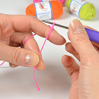 …och dra garnet genom alla 3 öglorna på virknålen.