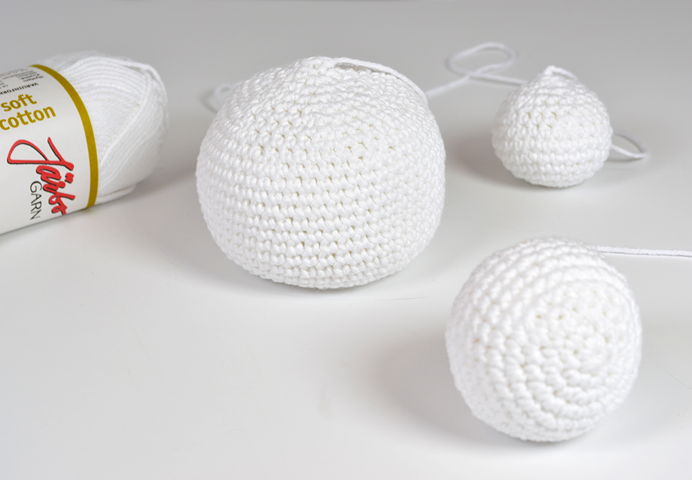 Snöbollarna virkas i spiral, utan avslutning på varven.