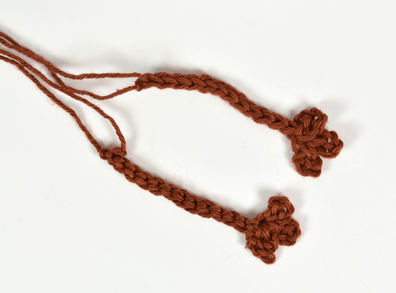 Ta av garnet och dra igenom sista öglan. Lämna båda trådarna till monteringen.