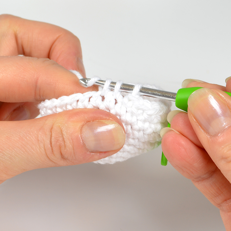 Börja i 3:e lm från virknålen och virka 1 st i varje lm.