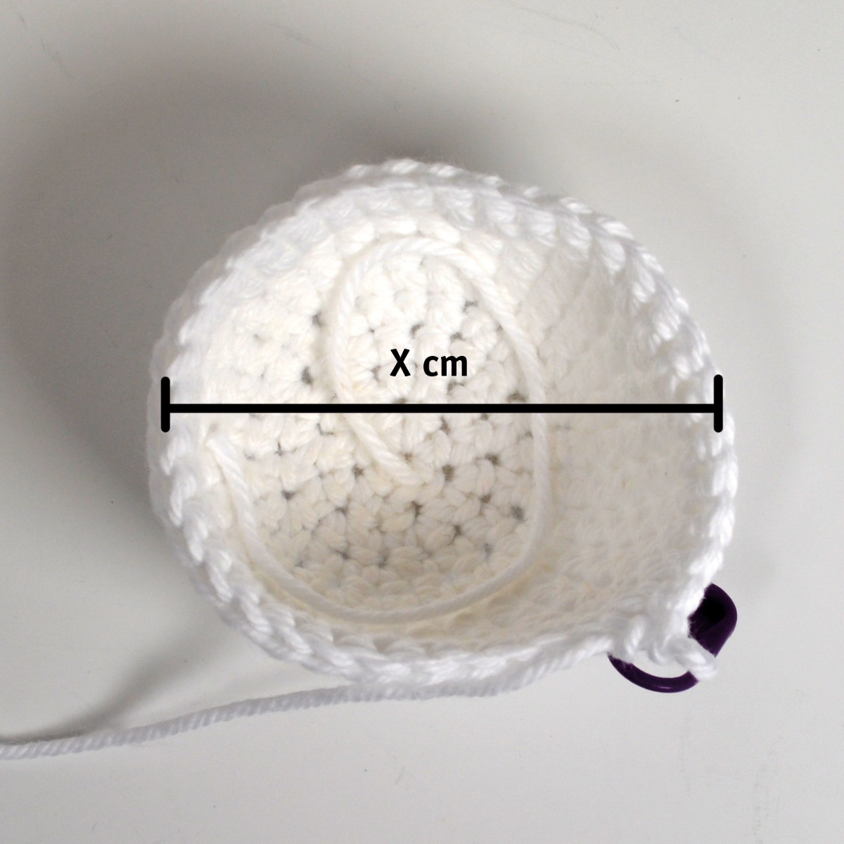 Sedan virkar du utan ökningar tills höjden är hälften av diametern.