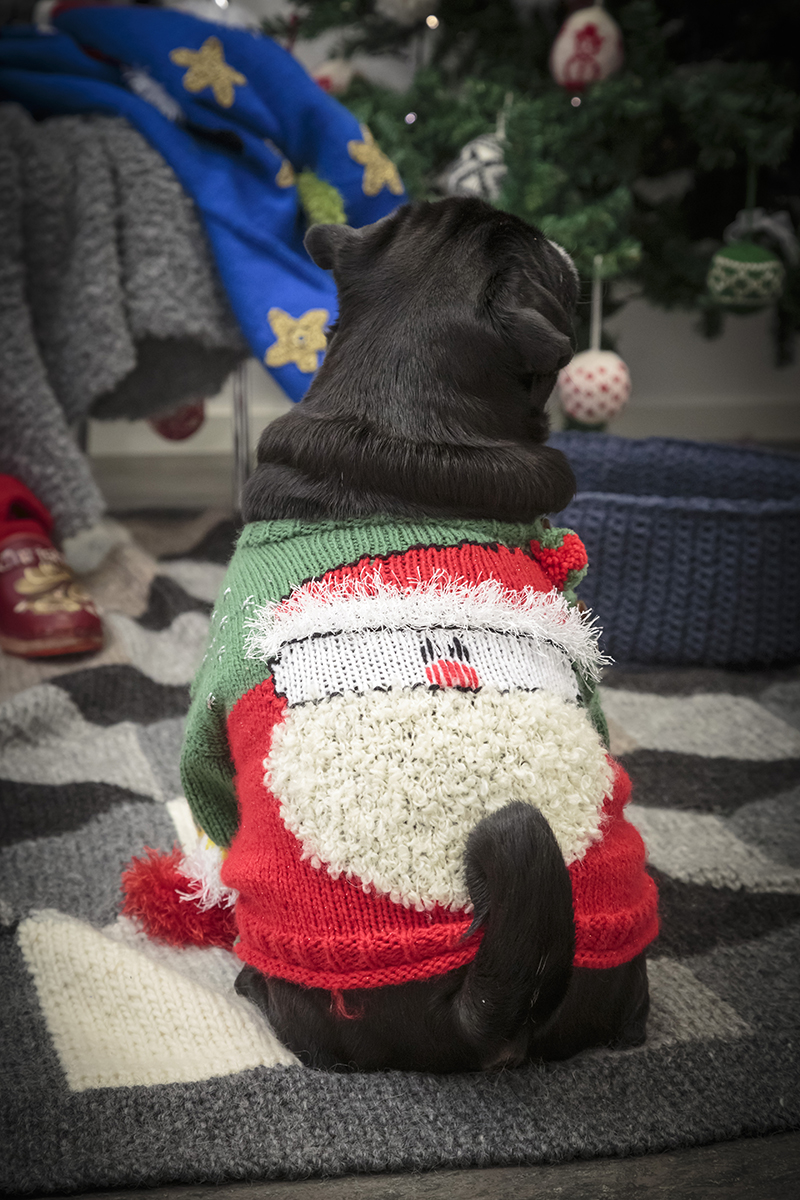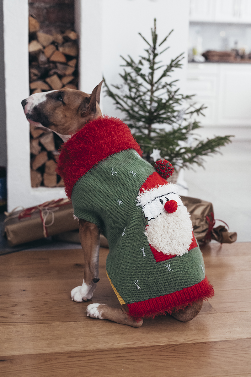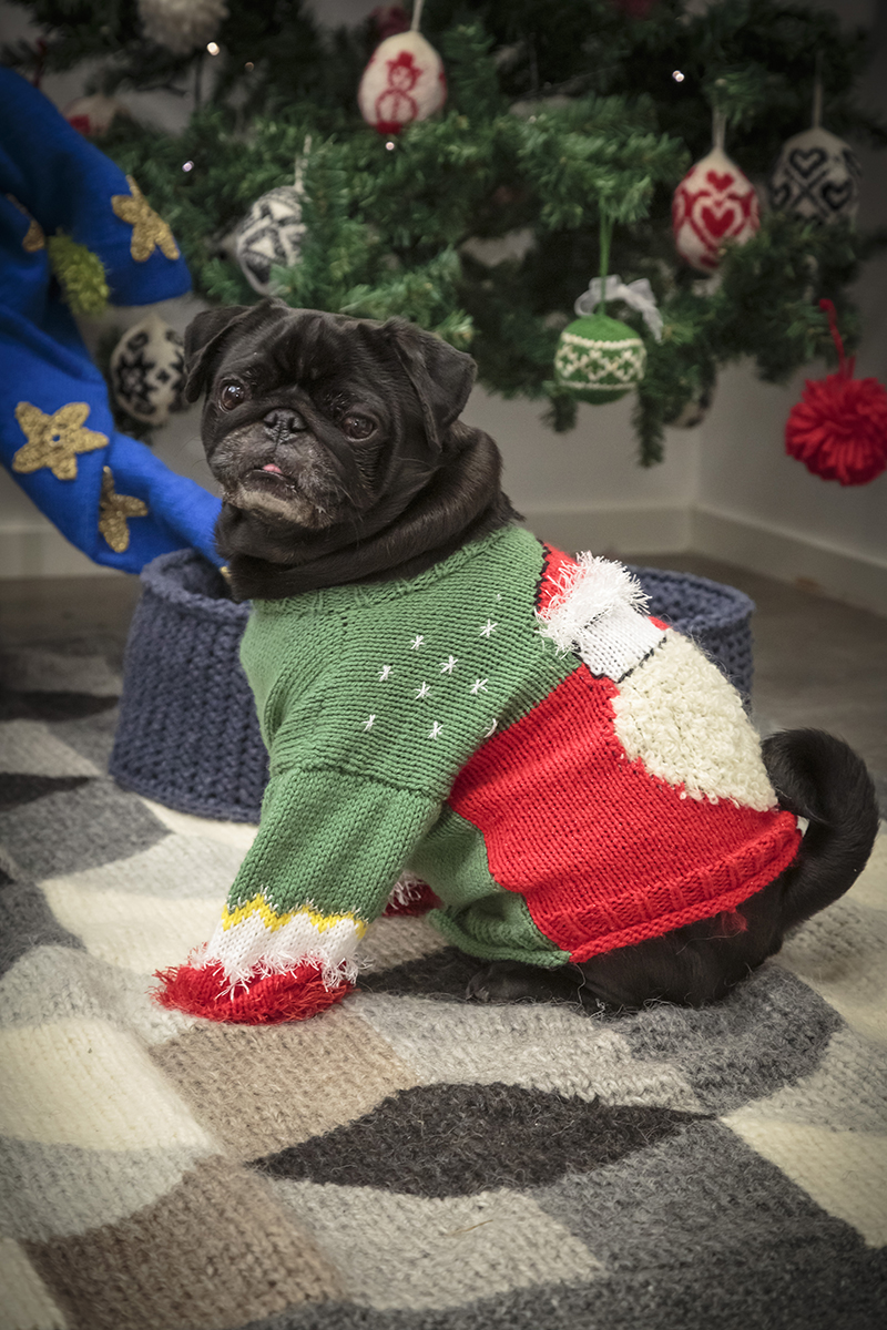 Vi fortsätter i gårdagens julanda genom att bjuda på två tomtetröjor till människans bästa vän – hunden! Ovan ser du en lite större modell som passar hundar upp till strax över 20 kg, alldeles lagom för miniatyrbullterriern Håkan! Nedan hittar du en mopsen Ztellans favorit, en tröja som passar perfekt till hundar kring 11 kg. Trevlig stickning!