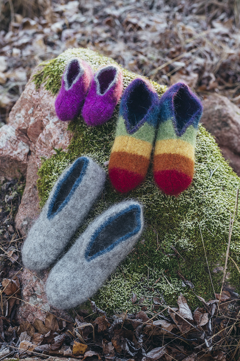 OBS! Olika tvättmaskiner och tvättmedel kan påverka den slutliga storleken på den tovade sockan. Är arbetet efter tovning för stort, tvätta ytterligare en gång. Är arbetet efter tovning för litet, blöt det och dra ut till till önskad storlek. Efter tvätt sträcks sockorna ut efter angivna mått. Sträck medan de fortfarande är blöta. Lägg ut dem att torka på en plan yta.