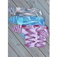 Blockning och tvättning: Garn kan färga av sig när det ligger fuktigt en längre stund. Var extra varsam vid blockning och tvättning av plagg med starka kontrastfärger. Fukta arbetet, gärna med en sprayflaska, krama försiktigt ur eventuellt överskottsvatten i en hoprullad handduk. Lägg arbetet att plantorka och spänn ut det efter angivna mått.