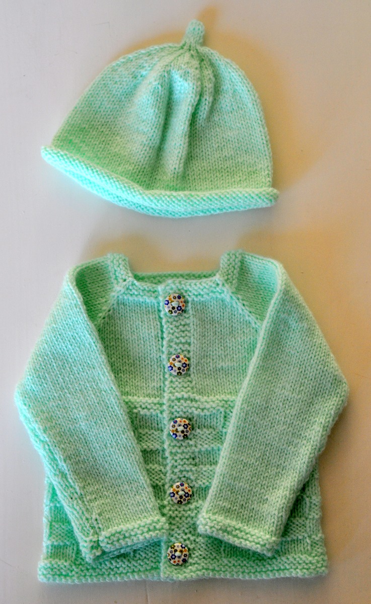 Den lilla mössan är stickad efter beskrivningen till Jordgubbsmössan i boken Sticka & skicka. Länk till mönstret hittar ni här. Lägg upp 86 m så blir den lagom till koftan!