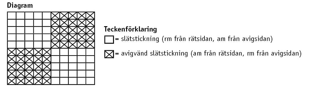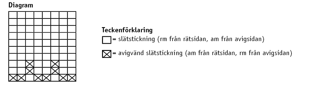 Varv 1 (avigsidan): 2 rm, *2 am, 2 rm, repetera från * varvet ut.