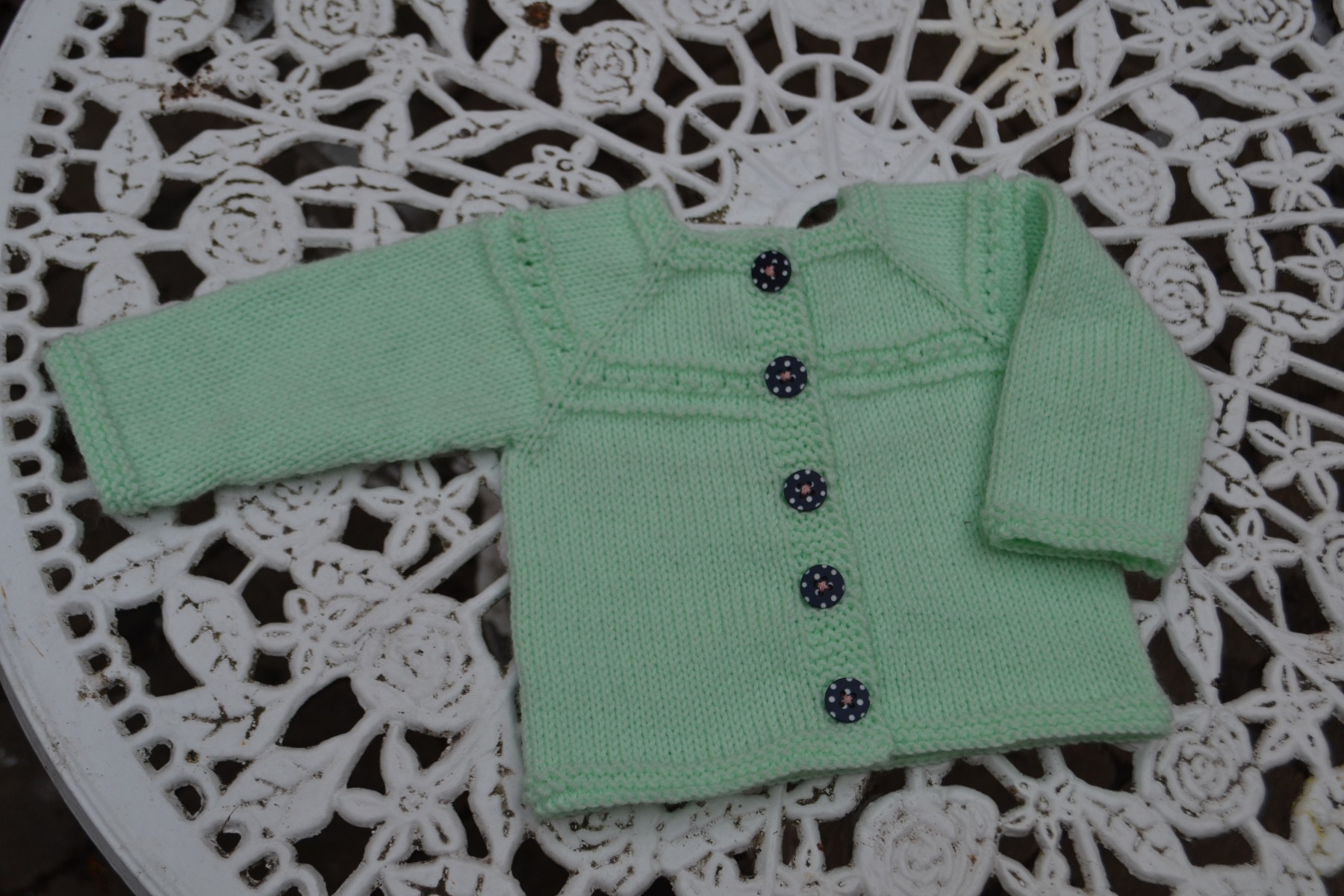 Själv har jag provat att göra lite enkla spetsstickningsränder på ett par koftor.
