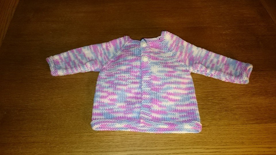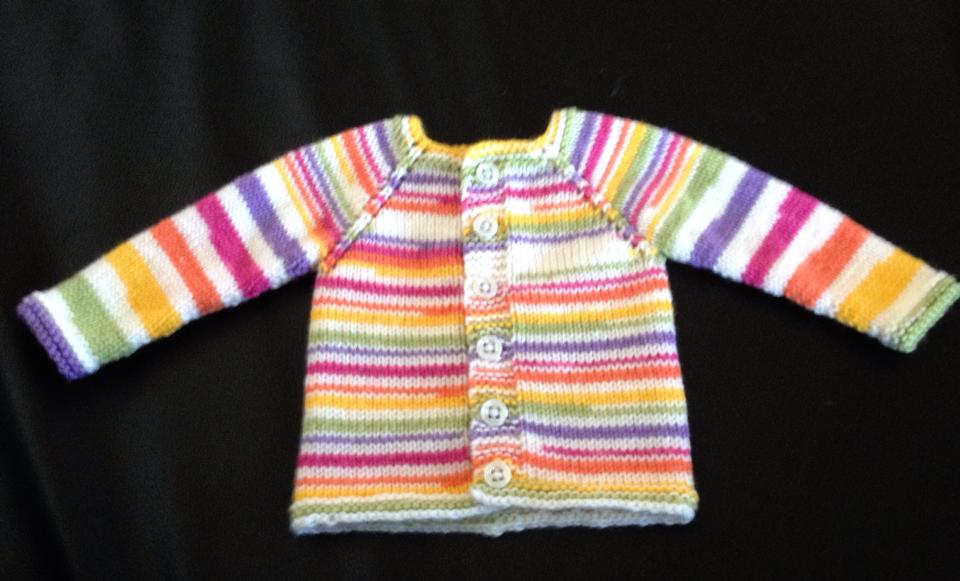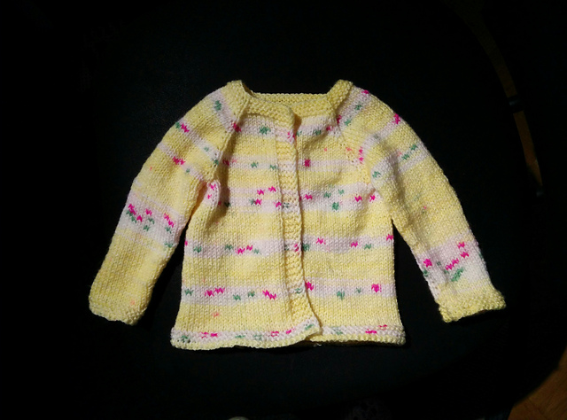 P har använt ett självmönstrande garn och lagt upp sin kofta som ett projekt på Ravelry. Ni som använder Ravelry, fyll gärna på i Två trådändars lilla kofta-albumet där!