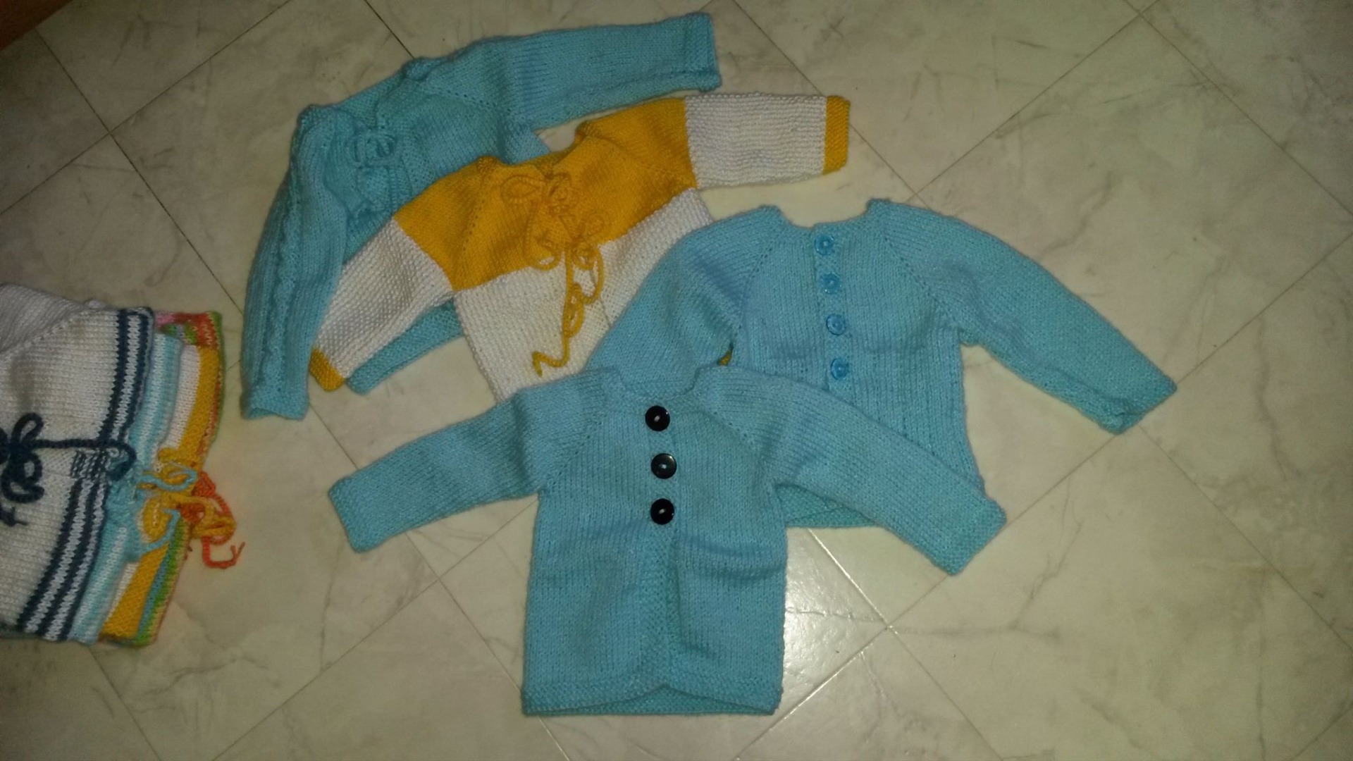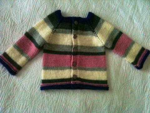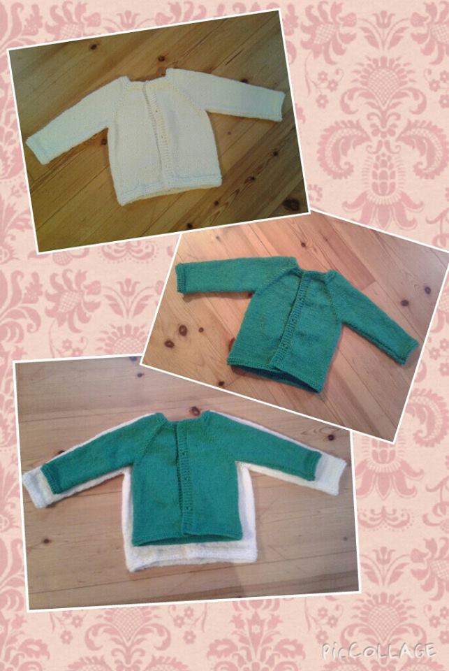 Det är nämligen ganska många som har stickat koftan vid det här laget, och det är alltid lika roligt att se resultaten i olika grupper på Facebook och andra ställen. Eftersom koftan är så enkel och kan stickas av i stort sett vilket mjukt och barnvänligt garn som helst, och eftersom Ann-Christin och Annika gav oss så många variationsidéer, så blir koftorna – olika. Det gör mig så glad.