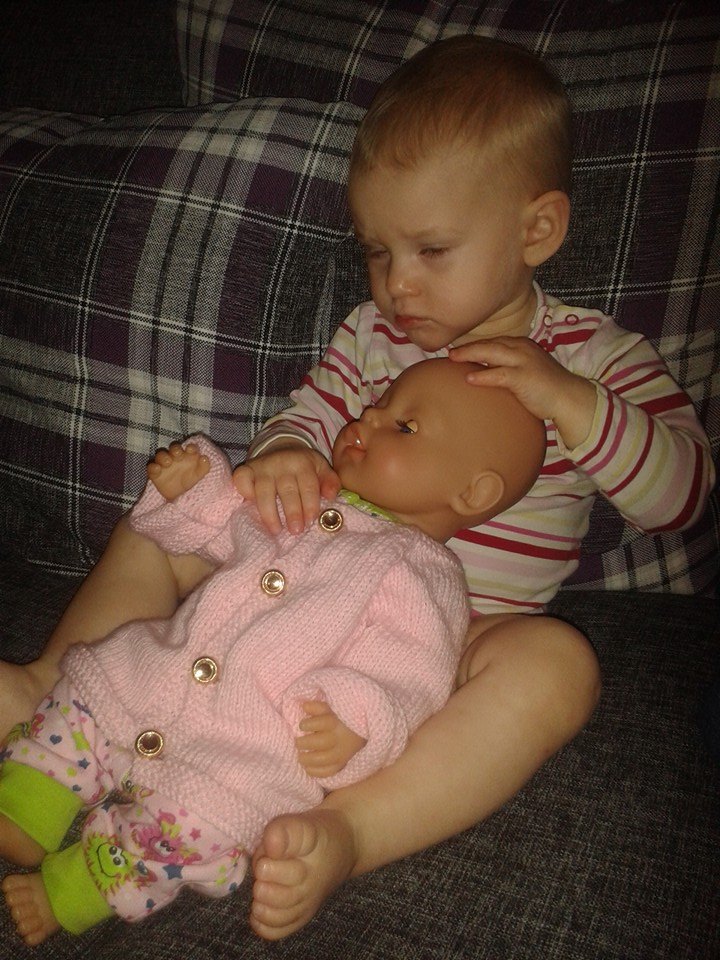 Anneli satte guldknappar i sin kofta och lät barnbarnet klä på dockan.