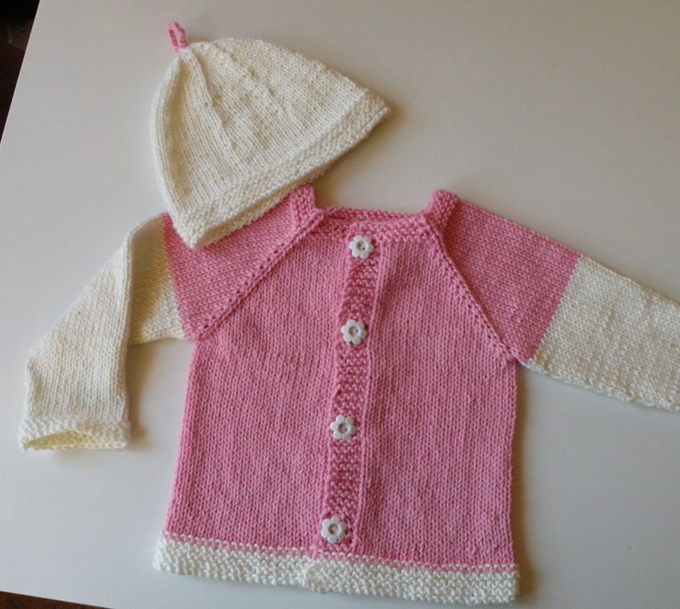 Carina gjorde hela koftan i rätstickning och kompletterade med en mössa (Skånemössan, finns i boken Garnglädje).